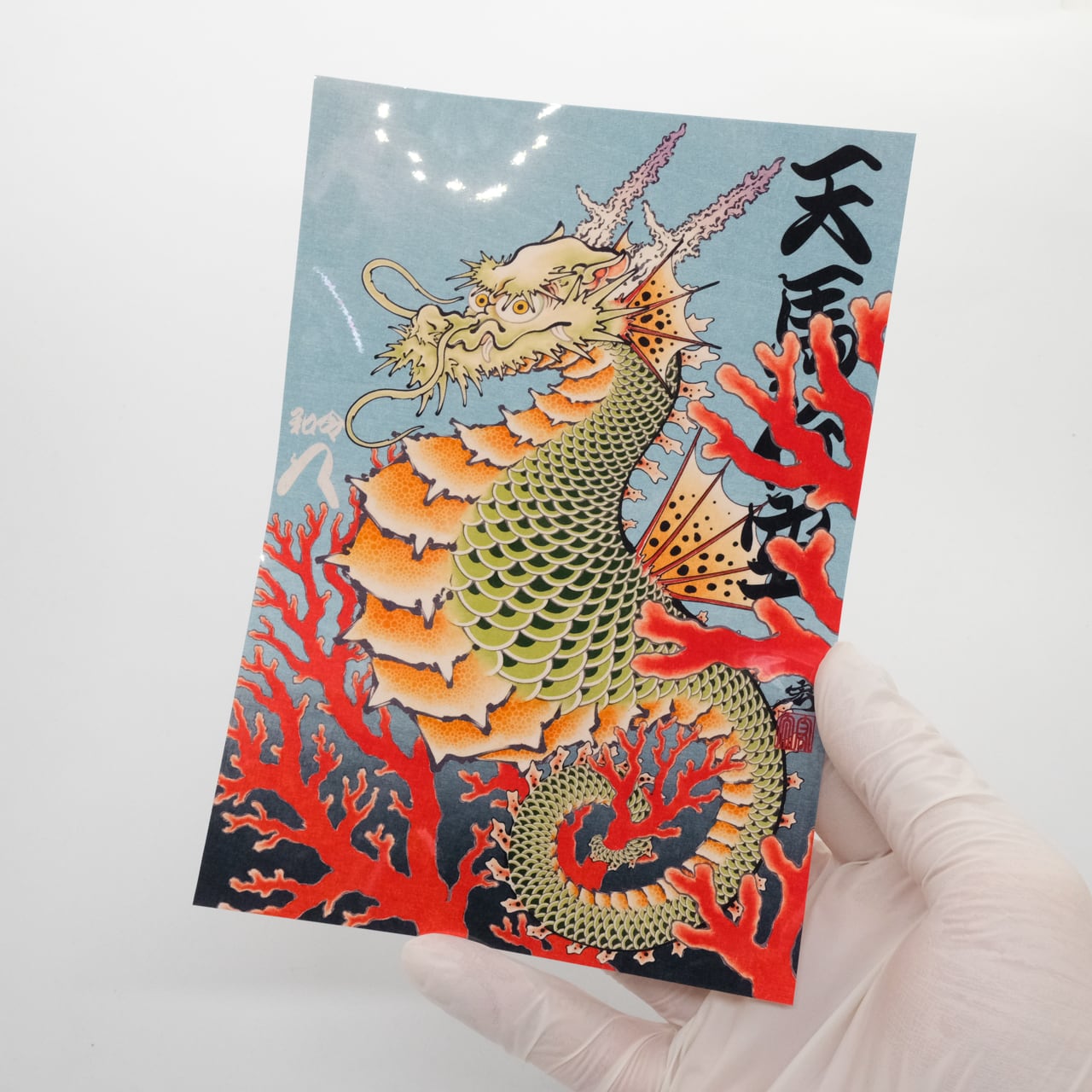『令和8年年賀絵 珊瑚海馬図 天馬行空』和柄耐水耐候ステッカー